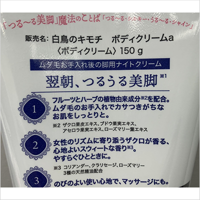 白鳥のキモチ 脚用スムースナイトクリーム | 4 |