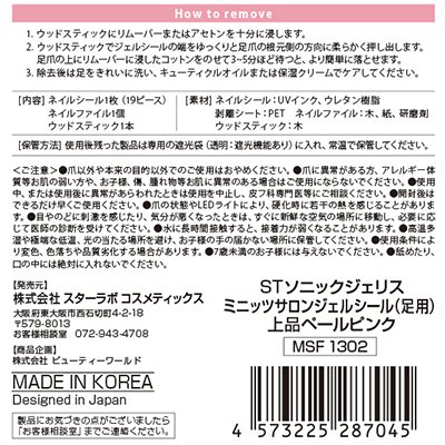 | STソニックジェリス ミニッツサロンジェルシール(足用)上品ペールピンク | 1 |