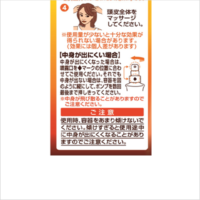 有効成分が髪の成長環境をサポート。さらに、液ダレしにくい処方で噴射後しっかり密着、育毛成分がじっくり浸透します。マイルドな使い心地を追求し、アルコールの配合量を抑えました。心やわらぐマイルドハーブの香り。「抜け毛が気になる」「髪のボリュームが減った」「髪の毛が細くなった」、そんな悩みをお持ちの方に。