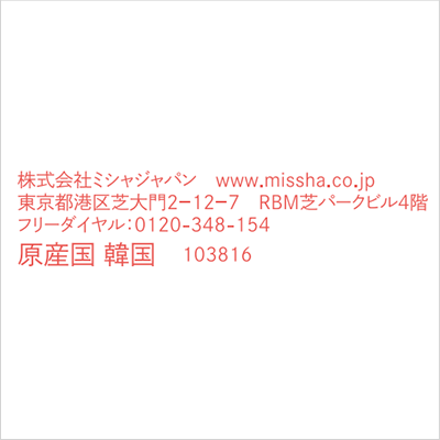 *4保湿成分:ホホバ種子油、ヒアルロン酸Na、ブドウ種子油、ヤシ油、アンズ核油、エーデルワイスカルス培養エキス、加水分解コラーゲン、アセチルヘキサペプチド−8、トリペプチド−1銅、パルミトイルテトラペプチド−7、ノナペプチド−1、トリペプチド−1、パルミトイルペンタペプチド−4、パルミトイルトリペプチド−1、ヘキサペプチド−9