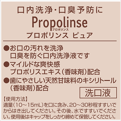 汚れが目で見て確認できる新感覚マウスウォッシュ「プロポリンス」の刺激控えめノンアルコールタイプです。