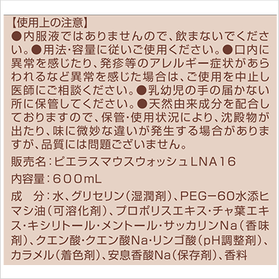 ●口中の異常、発疹等のアレルギー、ぜんそく等の症状があらわれたり、異常を感じた場合はご使用を中止し医師にご相談ください。