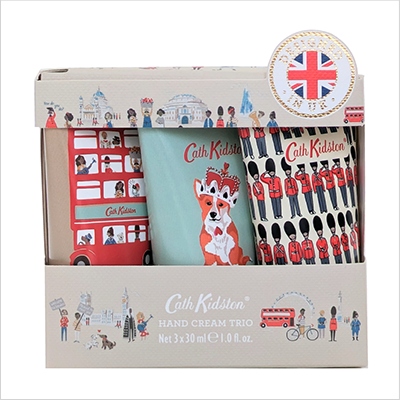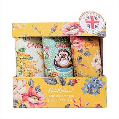 こちらで別のCathKidstonのハンドクリームセットを2種類購入させていただいてパッケージも可愛くて香りも良いし、使用後にベタつきもなくて手荒れも改善して綺麗になってきたのでこちらのセットも購入させていただきました。前回購入したものとは香りが違うので気分によって使い分けています。お値打ちに購入できたので、水仕事の後や感想が気になる時にこまめに使っています。
