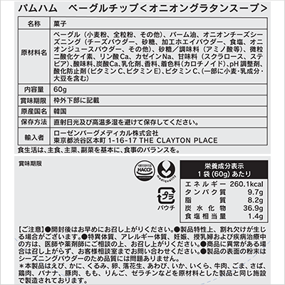 パムハム ベーグルチップ オニオングラタンスープ(賞味期限:2026年01月10日) | 5 |