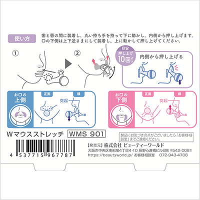 ・歯と唇の間に装着し丸い持ち手を持って下に動かし内側から押し上げます。