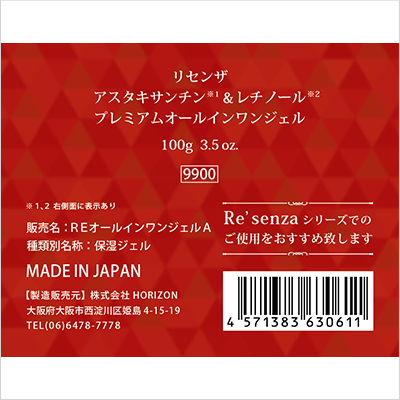 | Re'senza アスタキサンチン&レチノール プレミアムオールインワンジェル 100g | 1 |