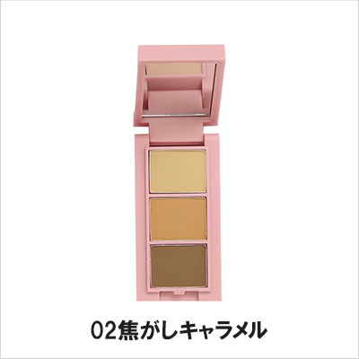 深めのブラウンカラーと、抜け感ニュアンスカラー、ノーズシャドウにも使える影色ライトカラーの3色は濃すぎず、薄すぎない、程よい発色で、自然な陰影感を演出。