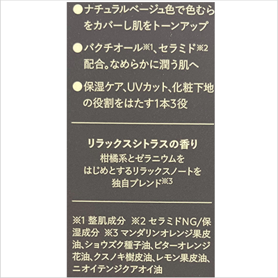 ナチュラルベージュ色で、色むらをカバーしながら自然なトーンアップを叶えます。