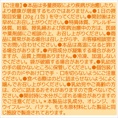 1日の摂取目安量(20g/1包)を守り、少量ずつよく噛んでお召し上がりください。