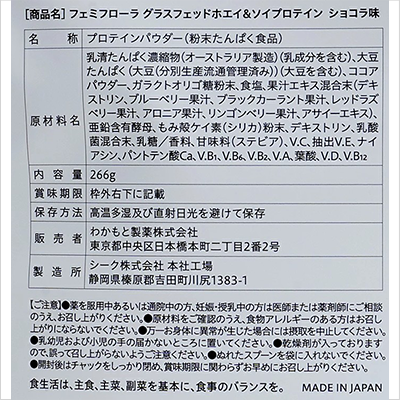 フェミフローラ グラスフェッドホエイ&ソイプロテイン ショコラ味