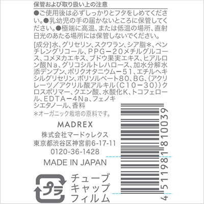 オーガニックシアバターのほか、ホホバ種子油などの植物オイルを配合。油分を補うことで、うるおいを保ちバリア機能をサポートします。
